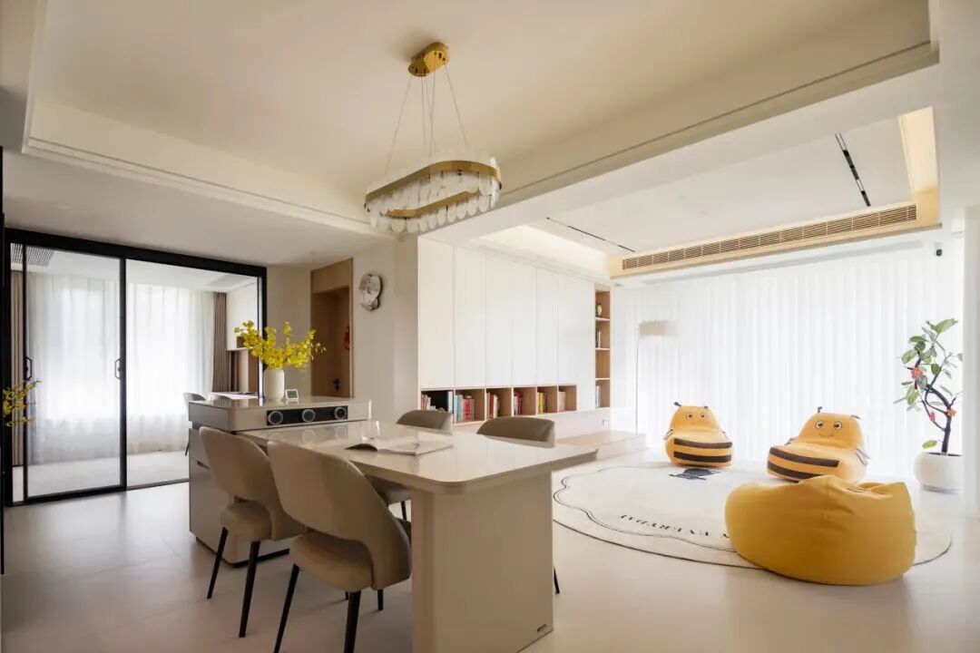 那么这里会建议大家去做软隔断或半隔断,在让空间功能一目了然的基础上,最大程度保持空间的开放性。